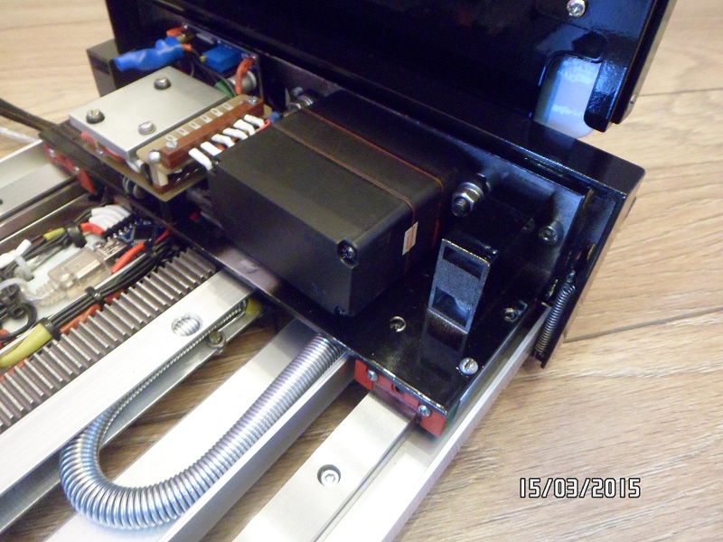 Вал на серве диаметром 6 мм , а посадочный диаметр шестерни 5 мм- рассверлил до нужного размера и посадил на супер клей, о котором упоминал выше. Сегодня обрезал лишнее и смонтировал на каретку.