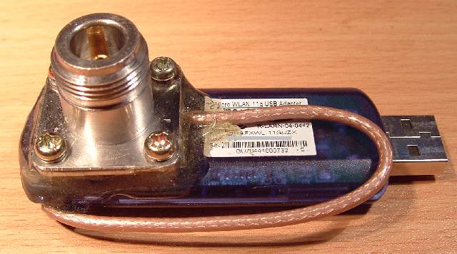 Вот, типа, готовый продукт. Модифицированный под наружнюю антенну USB донгл с самопальной антенной. Проект под стационарный комп. Фото для наглядности. С дизайном тут не очень, зато работает.