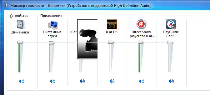 Да имел ввиду громкость навигационной программы. Почему-то не получается регулировать громкость программы даже в микшере Windows, что и пытался показать на скриншотах. А вот в iGo получилось. Может это быть результатом того, что менял (ранее) настройки микшера программы и сохранял для Сити Гида?