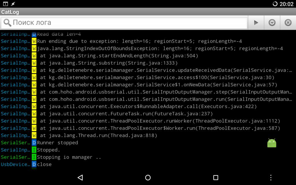 скетч на компе работает норм ,данные теперь идут раздельно <InDoor:14.5> <OutDoor:0> <Engine:0> а как только подключаю к планшету ститывает только один-два раза <InDoor:14.5> при подключении ,а потом молчит это видно в SerialManager один раз уведомление выскакивает и тишина с задержками поиграся - не помогает ( в logcat показывает что серис стопится