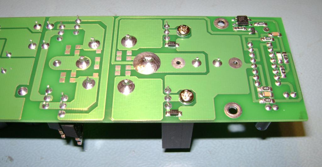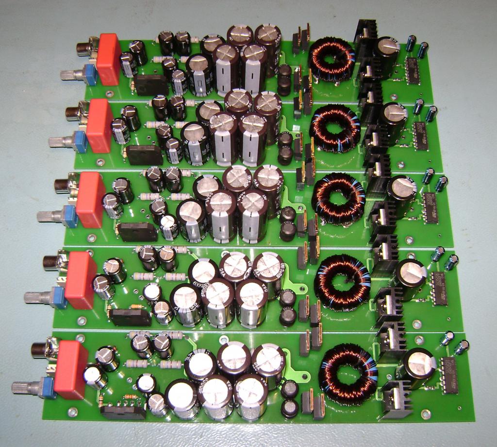 Прежде чем подключать акустику – проверяем постоянку на выходе – норма – 0 … 50мВ! По статистике AVG ~20мВ! Если больше 50мВ > Ищем косяки - не подключая акустики!!! Трансформаторы получились как под копирку: питание 3886: +24, -23.9; питание операционников: +13, -12.9 – на всех пяти каналах. Сначала обиделся (предполагалось +/-27 на 3886), потом покурил даташит: при +/-24 выходная мощность 55Вт – нормально – цель не сорвать двери с петель, а получить качественный звук. Посмотрев еще раз внимательно собственные расчеты – понял, что +/-24 вольта – это норма при входном 12.2. Непонятно почему в прототипе +/-27! Транс конструктивно по-другому не намотаешь: 16 витков вторички в четыре провода – больше не влезет, меньше заметно будет, и 7 (фактически получается 7.5) витков первички в восемь проводов. Все пять трансов втыкал в прототип: +/-24, родной прототиповский транс: +/-27. Мистика… Постоянка на выходах каналов: +1.9, -19.6, -12.8, -17.3, +2.9 мВ. Все в норме, но не понятно, почему такая огромная разница между крайними и средними (условно) каналами! Все одинаково: детали, платы, технология сборки, качество/количество мойки… Получился какой то класс А! Ток покоя пяти каналов 1.5А. При громкости (двух каналов) ближе к середине, ток потребления возрастает всего лишь до 2 … 2.5А. Больше увидеть не получилось – негде мне его на всю катушку включать, ибо соседи тоже человек, да и у меня башка не железная. Основной радиатор, при половинной громкости двух каналов (остальные три канала неактивны: питание подано, входной сигнал отсутствует, нагрузка не подключена) теплый: китайский мультиметр с термопарой показывает 39-40 градусов. Стали греться трансформаторы: 36-37 градусов, такие же ключи (даже на радиаторах BLA). В прототипе все было холодное вообще без радиаторов – тоже не понятно. Диоды холодные. Дроссели по питанию на кросс-плате холодные. Чуть теплые стабилитроны и резисторы в питании операционников, но это нормально – и в прототипе и в «домашке» так же. upd: Походу, все прогревается равномерно от основного радиатора: постепенно температуры всех компонентов становятся равны температуре основного радиатора: 38-40 градусов, при работе двух каналов на половину громкости. Прототип то «на улице» жил, а тут все в корпусе… Так что все нормально. Звук хороший! Не умею описывать звучание, но просто приятно слушать! Все на месте: и высокие, и серединка, и басы присутствуют достойно даже без сабвуфера! И не утомительно! Возвращаясь к выходной мощности. Не знаю, что там за цифры 120-210-300Вт на коробках от акустики и усилителей китайцы рисуют…, а этот усилок я НЕ МОГУ два канала одновременно на полную мощность выкрутить! Не то чтобы искажения, нет, а просто ОЧЕНЬ громко! А пять каналов…! Очень интересно было бы его обмерять грамотно: RMAA (как нагрузить…?), спектры снять… Ну и вообще – чтоб все по науке… Может есть у кого опыт, желание, возможность? Трудоемкость процесса изготовления конечно зашкаливает! Прав был Маньяк – конструкция только на первый взгляд кажется простой! Это он про «домашку» говорил, а здесь все еще интереснее! Но оно того стоит!!! Однозначно!!! Щас допиливаю корпус.... Результат, покажу ![]() Все фото позжеее ![]() |