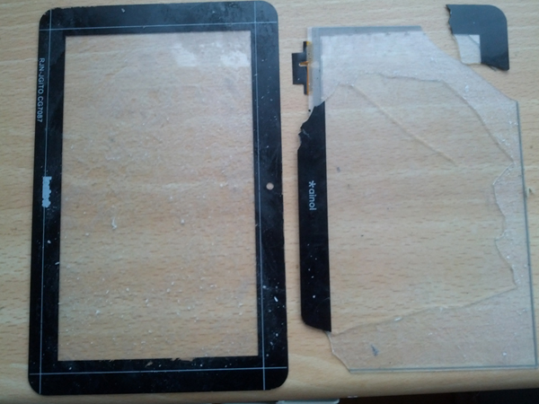 Приехал мне второй тач для авроры, который я также успешно утилизировал (треснул, когда собирал планшет, родной треснул - когда разбирал). Сенсорное стекло 0,3 мм по всей площади какой-то липкой фигней приклеено к такой же толщины стеклу. Мне с одного удалось отклеить стекло от тача, не повредив стекло (тач и так был треснутый) а вот во втором случае - (тач был вроде бы целый а треснуло стекло) не получилось. |