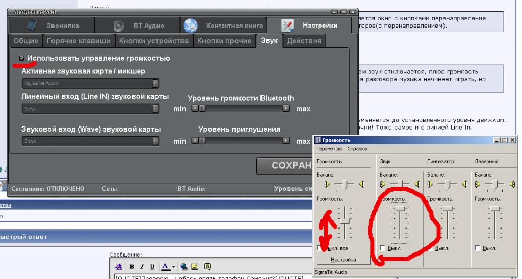 Если я запускаю прогу Car_bt.exe с такими настройками, то обведенный слайдер микшера опускается со 100%(как на картинке), до примерно 30% и назад не возвращается. только руками.