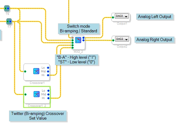 У ADAU1702 четыре выхода DAC, на плате 2 корпуса ADAU1702 - итого, 8 DAC, из них используется только 4, а еще 4 просто выведены на разъем, но не используются. Постараюсь завтра указать номера контактов. Обратите внимание, на неиспользуемые DAC в SigmaStudio - никто не мешает ввести необходимую обработку, вывести через неиспользуемые DAC сигнал наружу. Можем и мы их вывести на панель... Просто не считали, что это кому-то нужно...