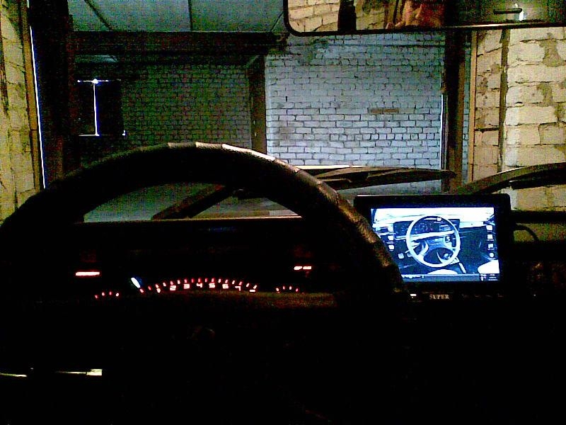 Промежуточный результат установки монитора и проба системы. В схеме питания произошли очевидные изменения, чуть позже выложу. Качество фоток не очень хорошее (в гараже темновато).