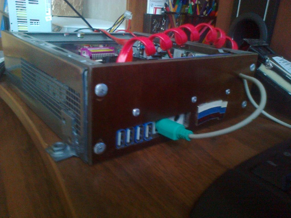 1) Переделан корпус - теперь вместо дырявой передней панели, морду закрывает кусок гетинакса (по данным БИОС, температура внутри блока меньше, воздух протягивается по диагонали, а не всасывается во все щели... 2) сдалано жесткое крепление - теперь корпус прикручен к верхней панели бардачка, а не в распор между бардачком и усилителем кузова 3) HDD крепится на пружинах, но под него подложены паралоновые "аммортизаторы". (Раньше, на холостом ходу движка была сверхлегкая вибрация на HDD, теперь этого нет) 4) Передние гнезда USB установлены вертикально для удобства подключений и экономии места... ИТОГ : 1) корпус живет на своем месте, а не как раньше, по временной схеме, с распорками - после хорошей кочки мог висеть проводах... 2) за месяц эксплуатации, ни одного сбоя HDD по причине неровности наших дорог, тфу 3 раза... При прежней схеме подвески (на пружинках) редко, но сбивался HDD, теперь все ок ! 3) (-) не всякий разъем USB влезет передние гнезда по причине профиля потолка бардачка... Решено подложить 4 мм шайбы... Вот фото