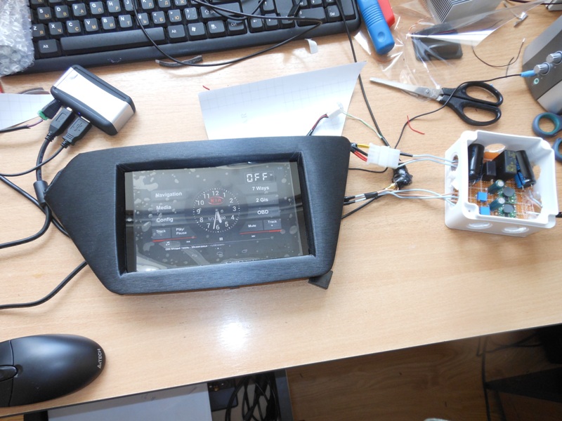 наконец то завершил работы по электрической части: блок питания собран, все кабели распаяны. Также подпаял внешнюю gps антенну, спасибо Timtman и Rage2 за идею и ответы. Все это пока собрано на столе, проходит отладку. Остается только заняться доделать программную часть и смонтировать в авто