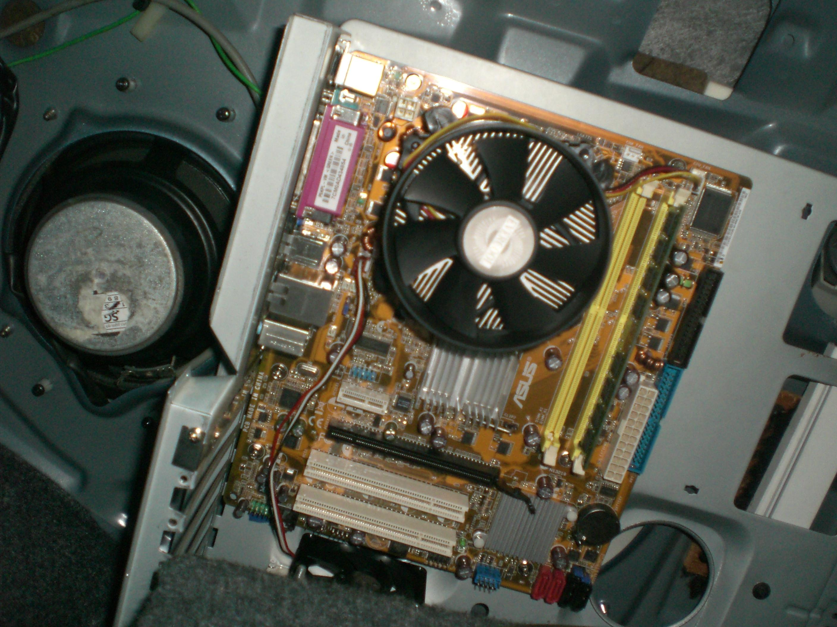 А "исчо", как говорила Екатерина вторая я наконец-то нашел подходящее место для компа, ибо его фиг куда засунешь. Такая большая машина, а маленький комп девать некуда. Вообщем что вы об этом думаете? Сразу скажу что вариант не окончательный, скорее всего будет еще сверху кожух...