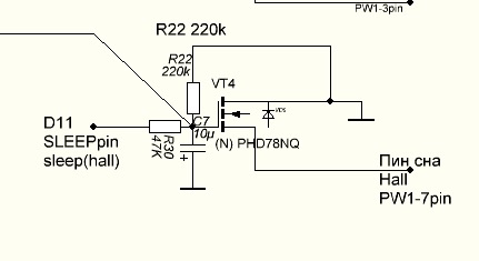 Теперь надо сделать чтобы на датчик холла по дефолту была земля. т.е. по дефолту открытый мосфет, чтобы не оставлять постоянно работающую ардуину.