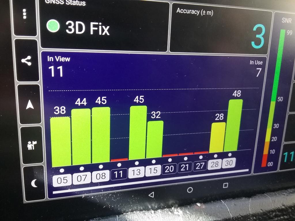 Ну что, сам поборол данную беду. Как выяснилось, проблема была в видеорегистраторе 0_о. Выяснил случайно. Чтобы красиво установить антенну ГПС я ее внедрил в "лопух" под датчик дождя зеркала заднего вида. Самого датчика дождя у меня нет, но все хотелось использовать полезное пространство на стекле, которое занято этим лопухом. В него и была установлена антенна. Через этот лопух протянут провод питания регистратора (сразу скажу, что провод отличный с экраном, кольцами ферритовыми Угриновский. Зарядное регистратора тоже отличное Микар чарджер и хейнер в качестве разветлителя прикуривателя...вообщем кто знает эти фирмы тот поймет) и вывел его наружу. Вообщем чисто случайно заметил, что когда регистратор отключен планшет все находит и красных/оранжевых спутников вообще нет, все желтое и зеленое. Как только подключил регистратор - все ложиться до показателей на скрине. Если 5В на самом проводе питания рега - это никак не мешает, хотя провод внутри лопуха проходит рядом с антенной. Нужно именно подключить сам регистратор. Видимо дает какую-то наводку. Не удивительно почему дома все работало прекрасно, да и в процессе первого запуска в авто тоже. Регистратор в тот момент был выключен.