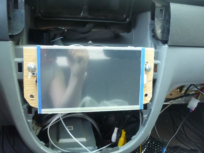 Так как место хочется сэкономить, то магнитолу решил засунуть под монитор, я ей вроде все равно решил пользоваться только как усилитель, но вот в последний момент все же решил панельку вывести для управления, мало ли что. И не зря Для облегчения конструкции вытащил из магнитолы CD привод, и сварганил из витой пары удлинитель к панельке. Магнитола переехала на этаж ниже (от штатного места), для крепления подошли родные кронштейны. Панельку от магнитолы вывел в самый низ, там ей и место. осталось для нее только подиум нормальный слепить.