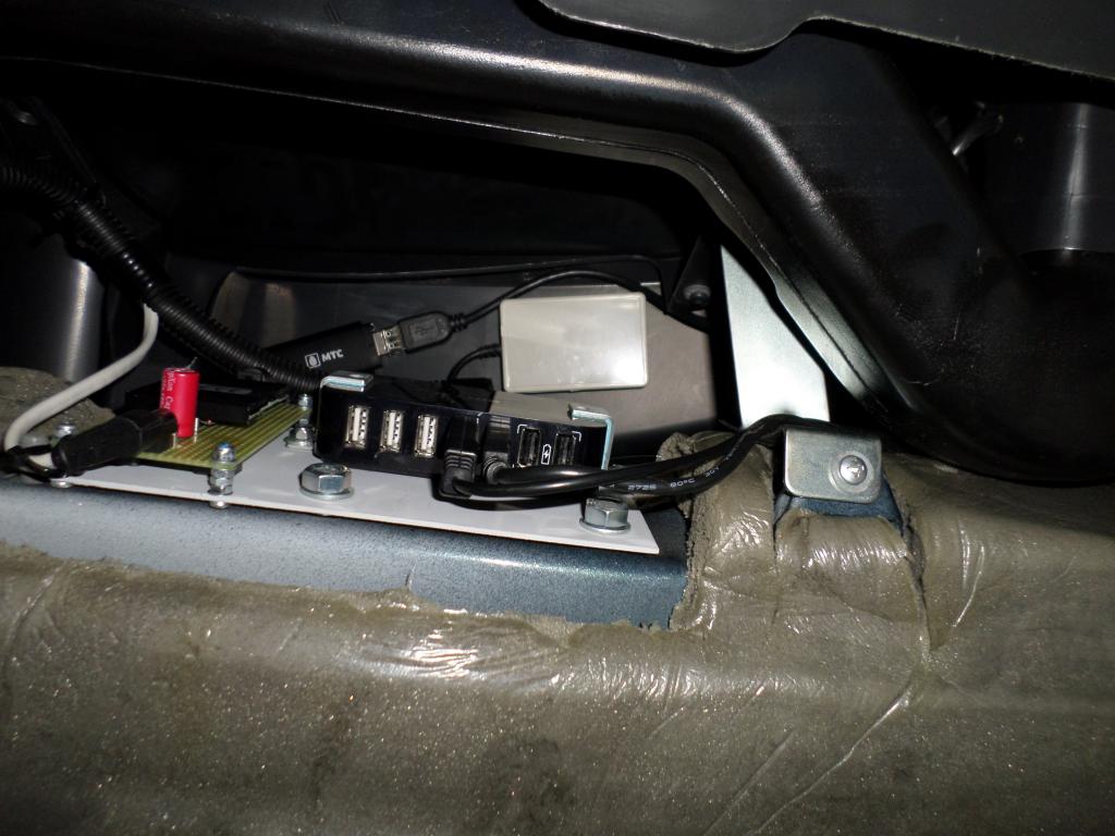 Для интернета (навигации и пробок) купил комплект МТС "Коннект-4". Программа "МТС Коннект Менеджер" автоматически подключает комп к интернету после загрузки, без лишних телодвижений. Модем приклеил на двухсторонний скотч к торпеде изнутри повыше. Рядом приклеил GPS-приемник. Над бардачком вообще места навалом, поначалу думал туда системник впихнуть...