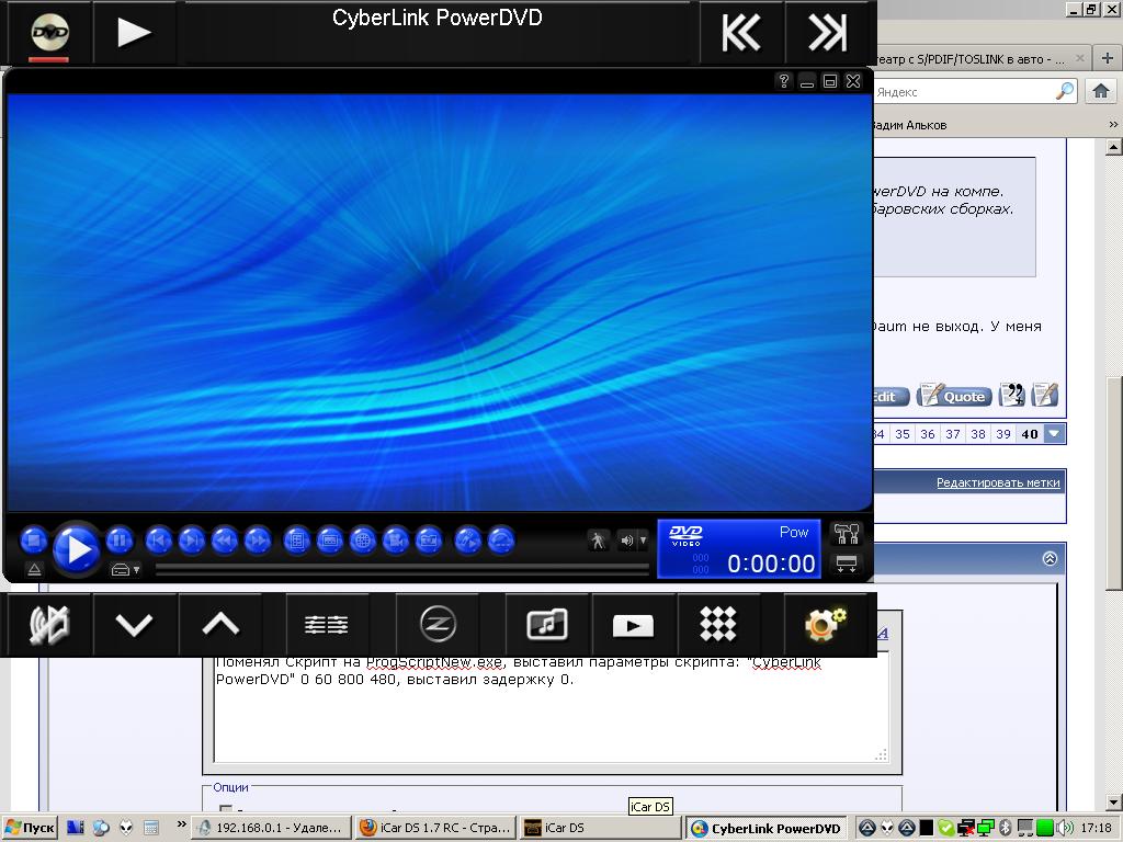 Поменял Скрипт на ProgScriptNew.exe, выставил параметры скрипта: "CyberLink PowerDVD" 0 60 800 480, выставил задержку 0. Стал запускаться первый раз нормально.