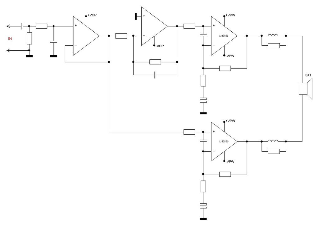 Практически все мостящиеся автоусилители, работают по такой схеме - доп ОУ в инвертирующем канале.
