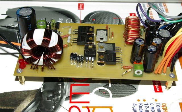 На всякий случай. Впаял. Меня только, все-таки смущает, что реально кол-во витков - не 4х6+2х8, а разное по разным обмоткам из-за перекидывания провоодов. Т.е. почти 7 и 9, хотя до впаивания - 6 и 8, ну может с небольшим хвостиком. Проверка платы и пробные пуски - завтра, т.е. днем . Сейчас спать... |