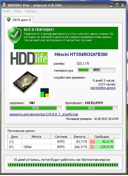 Только что скачал прогу HDDLife, установил на рабочем ноуте. Поклацал, поглядел... Не плохая прога... Вечером постараюсь в машине установить.