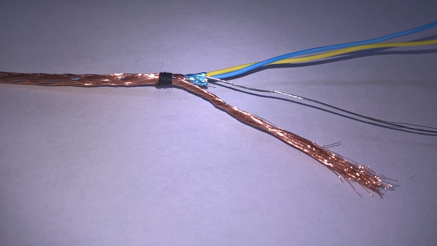 Из кабеля HDMI, которого у меня осталось много, но неподходящего для изготовления "правильных USB-шнурков" (нет внешнего экрана), вытащил одну витую data-пару в фольгированном экране и с кросс-жилой внутри (по описываемой технологии кросс-жила не обязательна, но если она есть, то добавляет ещё один защитный экран). На эту "витую пару" одел медную плотную оплётку, которая будет выполнять роль дополнительного (а может и основного) экрана data-проводников (напомню из из прошлых постов, фольга и кросс-жила — это экранирование data-пары) и зафиксировал с двух сторон тонкой лавсановой нитью (чтобы не "убежала" медь…). Кросс-жилу из фольгированной пары скрутил вместе с медным экраном. К сожалению нужной, в таком случае фторопластовой или хлопчато-бумажной оплётки у меня нет, а планируется дополнительный внешний медный экран и обязательно нужно два экрана изолировать друг от друга по всей длине кабеля… Зато есть "змеиная кожа"… Одеваем "чулок" на медный экран и снова фиксируем с двух сторон лавсановой нитью. Теперь силовая часть кабеля… Выбор однозначен — МГТФ 0,35 мм.кв. Мягкий, медный, в негорючей изоляции — как раз для авто. Сечение выбрал именно такое, что бы не добавлять толщину кабеля и для увеличения сечения линий "+5v" и "GND" складываем паралельно по два провода для каждой линии питания, что в сумме даёт по 0,7 мм.кв. Навиваем вокруг "змеиной кожи", которая выполняет роль изоляции между экранами, стараясь укладывать как можно ровнее. И снова фиксируем нитью… Поверх получившегося кабеля, "одеваем" ещё один внешний медный экран, как делали до этого и финишный слой — "змеиная кожа". Экраны паяем на корпуса разъёмов с обеих концов кабеля. Получаем USB кабель с data-парой стандартного импеданса, с тройным экранированием, с гарантированной защитой от любых помех и линией питания для мощной нагрузки. P.S. Потери по напряжению составляют примерно 0,4V ( длина кабеля - 4м., сечение проводов - 0,7мм.кв., напряжение +\-5V., ток нагрузки - 2А). Если нужно увеличить мощность кабеля - просто добавляем парных проводов в линию питания. Последний раз редактировалось skanch; 27.11.2019 в 21:03. |