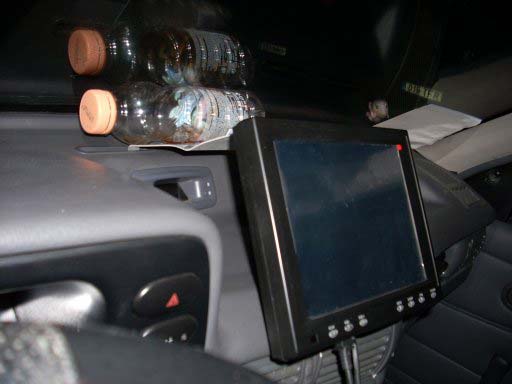 Пробный запуск - комп брошен в багажнике, проводка не уложена, моник лежит на пасажирском сиденье и подключен к проводам идущим из консоли.