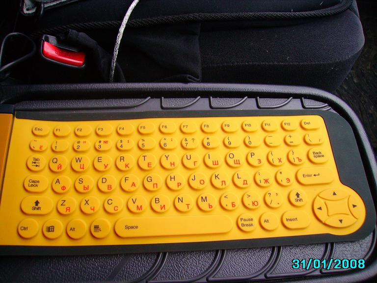 ![]() У меня складной столик между сидениями - клава как раз в его размер |