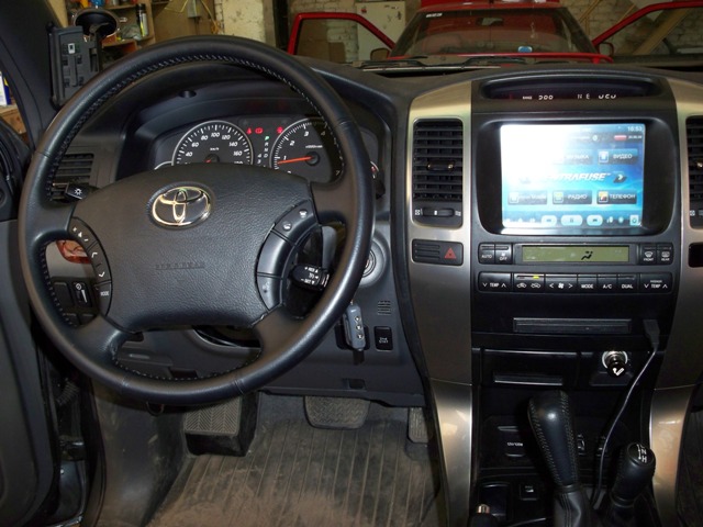 Компоненты: Car PC Системный блок: -Celeron DualCore E1400 2.00Ghz 512Кb box, -MB ASUS P5KPL-СM s775 mATX, -DIMM 1024Mb DDR2 PC2-6400 Kingston, -HDD Mobile 320GB Seagate 5400об/мин, 16МБ кеш, SATAII-300, 2.5 дюйма, -AVerTV HYBRID + FM с Д/У TV, -плата видеонаблюдения AVerMedia 4EyesPro, -SC Creative SB X-Fi Xtreme Audio (SB0790) -блок питания М4-АТХ 230W Монитор тач Liliput GL 859-80NP/C/T 8" 800х600 Внешний DVD slim нойтбучный Радио LART Видеокамеры 3 шт Garmin GPS USB 18 Блютуз GPRS модем Картография Garmin City Navigator + карта дорог Украины ELM 327 Тачпад Easy Cat 2 Button WiFi Аудио-система Усилитель helix db five Фронт AudioArt Revolt s650 Тыл AudioArt SX65 Сабвуфер kicker cvt65 Системный блок установлен под передней пассажирской сидушкой (сорри забыл сделать фото), под водительской установлен усел. Переделана родная тоётовская рамка двухдиновая, для адаптации лилипута. За монитором установлено два хаба куда подсоединены практически все юсб устройства. Питание подключено таким образом, чтобы через полчаса после выключения зажигания комп выключается. На основе вышеуказанных компонентов построена ауди-ситема, зашумлены двери и часть багажника, кроме того планируется дополнительно подключение центрального канала. Закуплены отдельно штатные кнопки управления с руля и подключены через контроллер клавиатуры. Кнопки были вставлены в штатные места, единственное, что пришлось подрезать немного руль. Управление компьютером осуществляется: • Тачскрином • Беспроводной клавиатурой • USB тачпадом Дополнительно подключены к родным кнопкам команды Esc, Reser, Power Установленная оболочка Центрифуга Функциональные возможности: Мультимедиа Навигация (Garmin, Ozi) Блютуз Работа с данными по ОБД 2 Интернет Камера заднего вида Видерегистрация Вывод изображения одновременно с трёх камер Офисные приложения Что самое интересное, больше всего боялись некачественного приёма радио и наводок, с первым проблем вообще нет, подключили к родной антенне и работает очень даже прилично. По звуку наводок нет, есть немного на мониторе, но это за вторым заездом исправим. К компу подключены три камеры: задняя, передняя и ещё одна задняя, установлення в салоне, при помощи родного ПО есть возможность как смотреть их одновременно, так и по очереди, кроме того, как я уже писал передняя камера пишет, а задняя верхняя выведена напрямую в центрифугу и включается нажатием одной клавиши. Все родные кнопки на руле работают по своему назначению, только кнопку MODE прикрутить не можем, были бы рады если бы кто-то подсказал. Рамку будем переделывать, потому что экран всё-таки бликует, потому будем ставить его глубже, чтобы был козырёк. Сейчас начинаем второй этап: Подключение заднего монитора, для этого закуплен следующий монитор: XENARC 1210TR http://xenarc.com/product/1210tr.html А также вот такой видеоадаптер http://carmonitor.ru/ru/carmonitorvgausb-p-91.html |