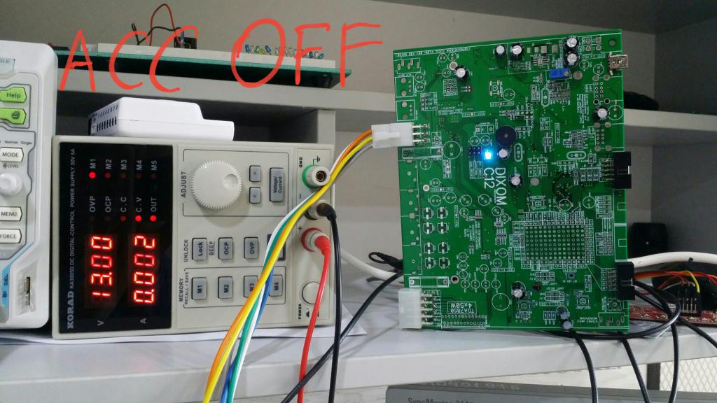 Результат меня очень удивил, ток потребления в холостом ходу всего 0.002А (2мА) это просто шикарно). В режиме ACC OFF постоянно работает (дежурит ACC) мк attiny13 на частоте 1мГц и блок питание для планшета, настроен на 4.2В. На всяких LM о таком тока мечтать.