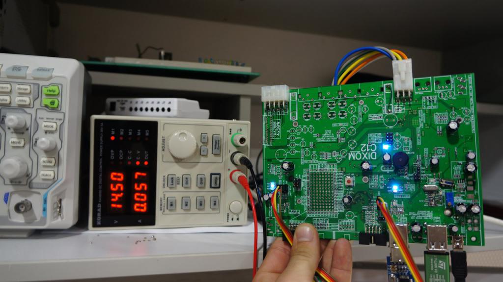 Собрал за сегодняшний день блоки питания на плате, написал прошивку для контроллера блока питания attiny13, запустил.