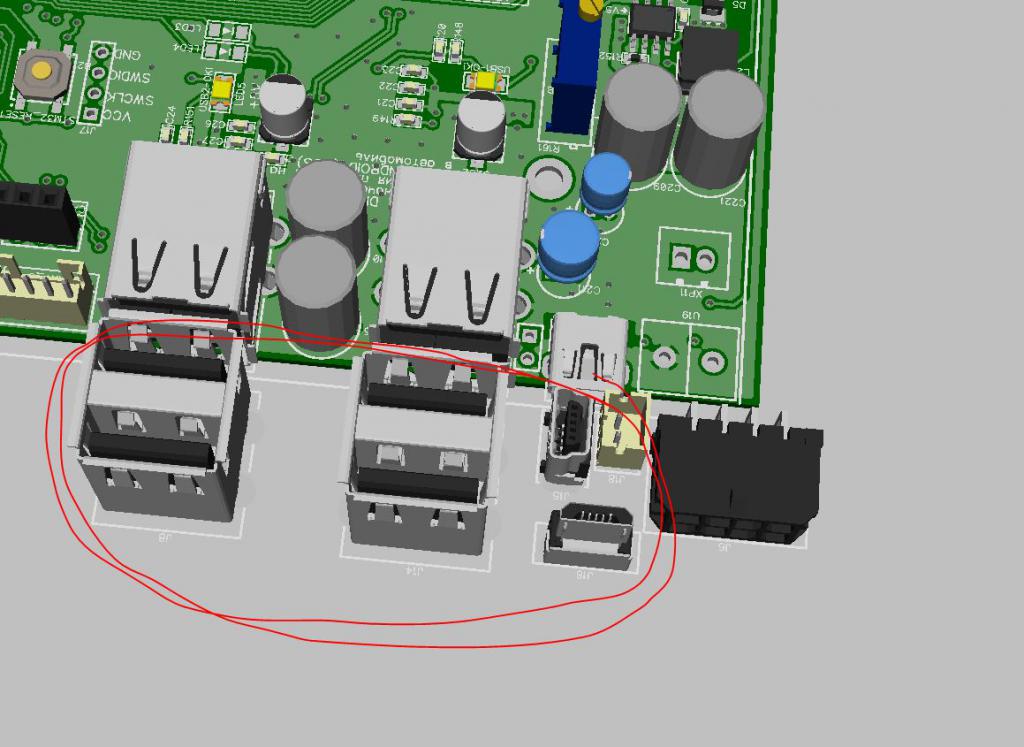 Я здесь попытался воткнуть плату в машину и пришёл к тому что стоящие в сторону салона USB выходы мешаются, так как упираться в планшет торчащие USB провода и устройства. И решил сделать эти разъёмы торчащими вверх от платы, тем самым они не будут мешаться.