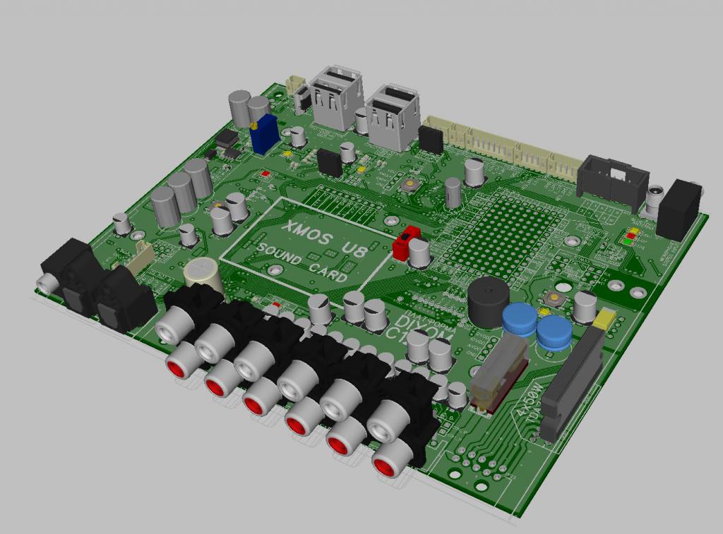 В общем написал небольшое приложение которое уже может управлять DSP ADAU1452 и Цпом ADAU1962 по USB, неделю бился над преобразованиями систем счисления в андройд) но всёже у меня получилось. Пока что для теста сделал управление громкостью 2мя каналами в DSP, всё работает отлично и сделал функцию перевода STM32 в режим обновления прошивки, скоро запишу видеоролик. Плату полностью избавил от косяков, и это финальный вариант готовый к производству (фото приложил), в общем жду станок. |