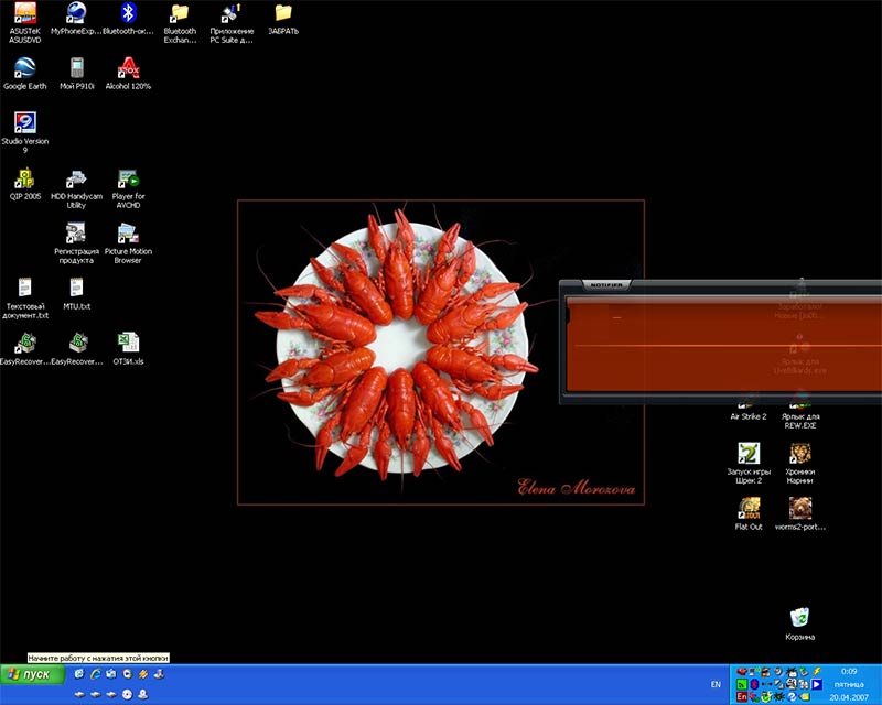 после загрузки вылазит овальное окошко с именем проги и номером версии и...."вот и все(с) ни на что не реагирует, снимается тока через диспетчер задач ![]()