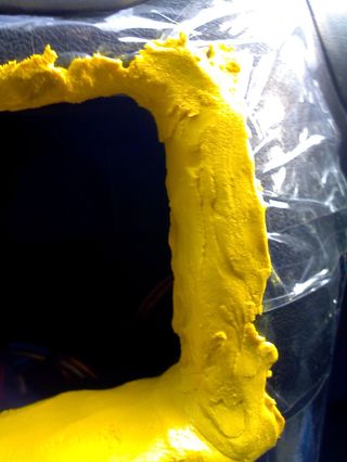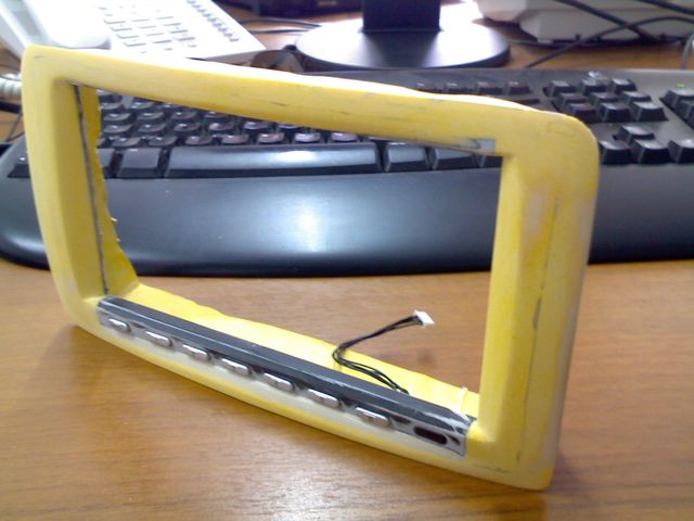 Начал ваять рамку надеюсь что первый блин не выйдет комом... осталось обрезать края, интегрировать рамку экрана, залепить бока, шпаклевать, красить... в общем еще много чего.... Пластелином очень удобно работать, он легко обрабатывается напильником - решил после рамки сделать себе кнопки на руле с использованием пластелина |