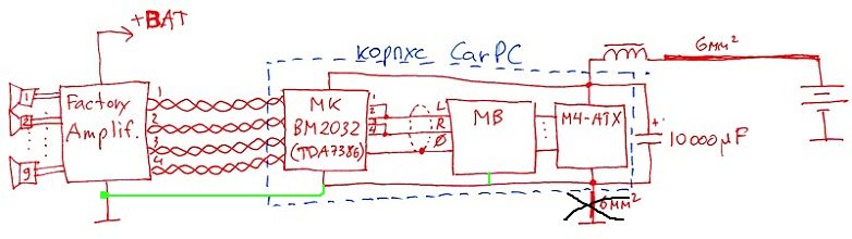 ) питания БП компа, форма тока ИМПУЛЬСНАЯ! Что для твой тдашки, есть зло .Тебеже ОдМин нарисовал, все про что я толковал, и про фильт для питания тож. Тк. фактори амплифер, подключен по балансту, то на него тебе еесно пофиг и от аккума минус тащить не обязательно вообщемто. |