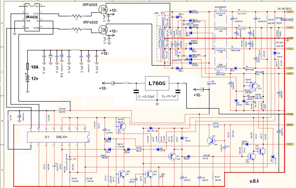 Ещё попали ко мне недавно на опыты несколько одинаковых АТХ-блоков питания на TL494. Даже их схема в сети нашлась. Хочу попробовать переделать по схеме без перемотки транса (по принцыпу автотрансформатора, автор vab3 http://pccar.ru/showpost.php?p=110711&postcount=574) В приложении привожу оригинальную схему и схему переделки. "Лишние" детали схемы закрашены а изменения обозначены жирными черными линиями. Прошу прокоментировать, все ли правильно. Еще диод Д15 я так понимаю не нужен ?