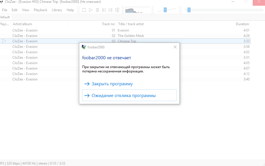 Поэтому и картина такая. Окно зависло , закрыть программу не возможно.