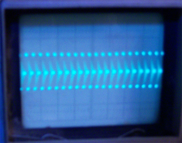 Я на фотках вижу только один полупериод, смотри выходы со средней ноги Шотток. Проверь правильность коммутации обмоток трансов. ИБП вообще без нагрузки запускать не рекомендуется. |