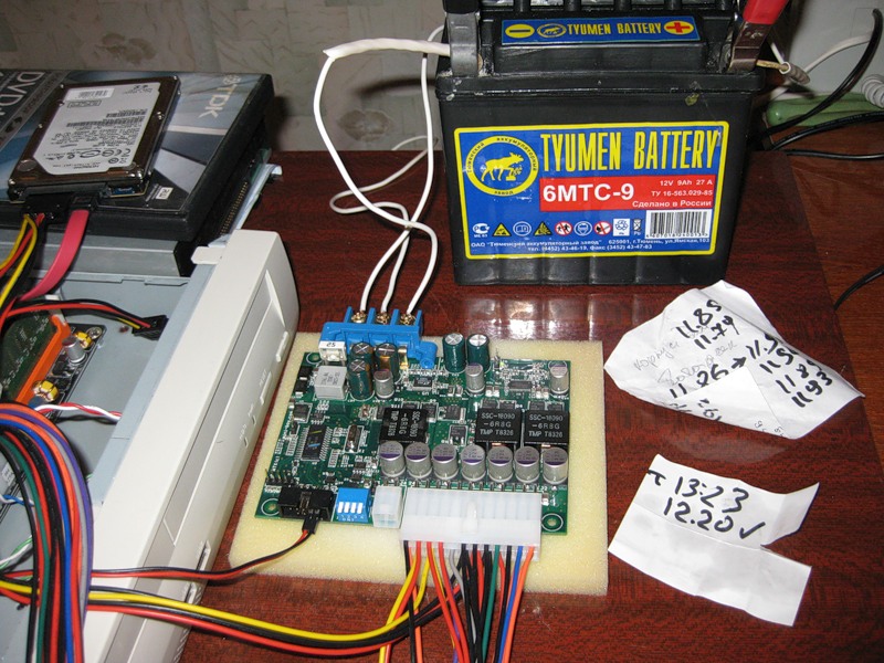 ![]() Кстати о батарейках, заинтересовало, а сколько проработает мой комп от аккумулятора 9Ач? Без нагрузки комп полностью употребил батарейку за 4 часа 45 минут. Если склероз мне не изменяет, в астре используется аккумулятор 60Ач, путем нехитрых расчетов получаем 30 часов работы. Негусто, по всей видимости, об автономной работе компа (при выключенном зажигании) придется забыть. Если только от этой батарейки, которую уносить домой на подзарядку. После измывательств аккумулятор отправлен на лечение. |