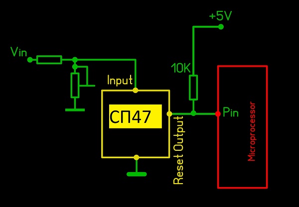 СП47 тоже подойдет - включать также через делитель с подстроечником (выставлять напряжение входа на супервизор).