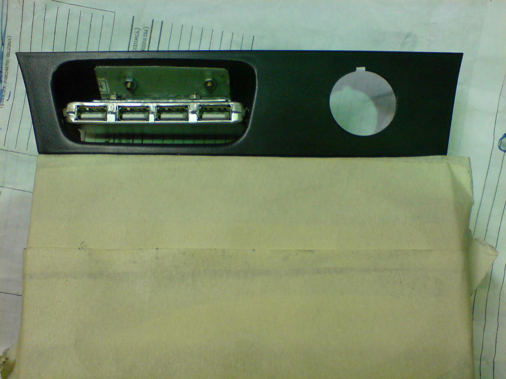 Было взято: шлейф компьютерный. Плата, разъёмы для шлейфа, сплав Розе, куплено в ЧИП и ДИП. 16. Выведено гнездо для наушников. При включении наушников сигнал на усилитель отключается. 17. В левую стойку был выведен микрофон для громкой связи. 18. GPS приёмник установил под верхнюю крышку, она приёму не мешает. 19. Описание установки дополнительного концентратора USB :Место выбрал рядом с прикуривателем. 1. Снял "туннель", вынул прикуриватель, вынул пластмаску в которую устанавливаются бутылки и пепельница. 2. Отпилил днище в углублении рядом с прикуривателем. 3. Разобрал разветвитель. Из 1мм стали выгнул заготовку и прикрепил к корпусу разветвителя, 2мм винтиками. 4. Вырезал из 1мм текстолита переднюю накладку. Потом грунтовка и окраска. 5. Прикрепил накладку 4-мя чёрными саморезами. P.S. Провод USB, который даётся 50см, я купил 1м. Провод я обмотал лентой, антискрипа, шириной 1см. Последний раз редактировалось Amisu; 10.02.2010 в 14:25. |