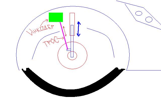 и тут ошарашило! вчера на работе полетел инкодер тросиковый на одном агрегате , ну тут я и подумал : можно, что то вроде этого прицепить и к подвеске !!! понимаю я это так, как на рисунке ниже . так можно задать после замены и легкой обкатке амортизаторов позицию 0 , сделать плагин допустим для центрифуги , и вывести уровень нагрузки на подвеску , далее можно смотреть на сколько какая пружина просела , и вообще получать довольно много информации в плоть до: авто запоминания плохих участков дороги и отображения их в навигационных программах !!!