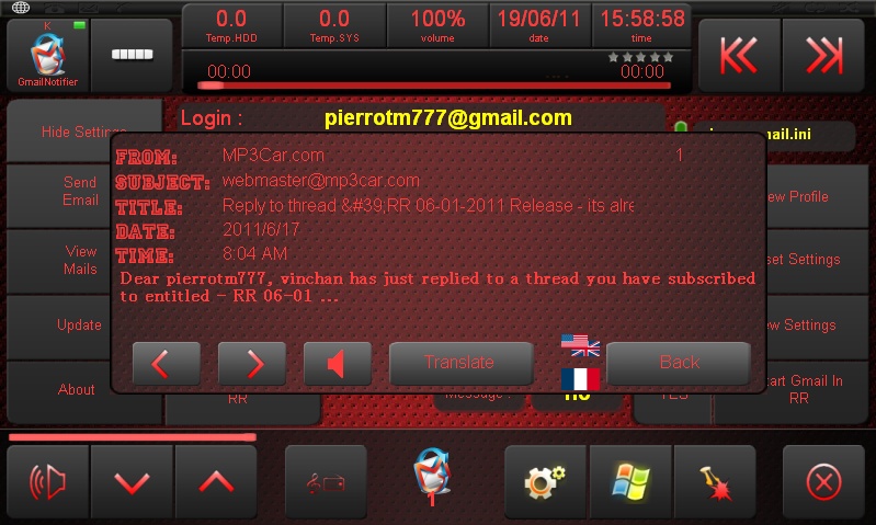 *********************** You can read just the begin of each unread mail. You can listen to you email. You can to traduce your mail into the language that you want (you must to have my translator plugin ) PLEASE, read the readme.txt file for installation ! readme.txt file: Код: