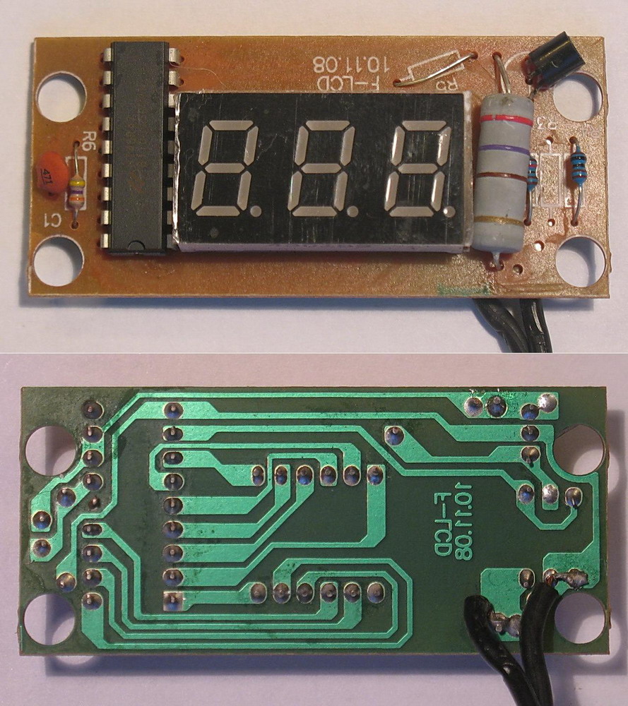 Купил в Китае авто вольтметр, сделан для подключения к авто розетке. Понравился тем что не нужно ничего делать с панелью автомашины просто прилепил на скотч где удобно, Протестировал, выявил недостаток, после включения минуты через 2-3, он нагревается и показывает напряжение на 0,3 вольта меньше фактического. Логично предположить, что погрешность связана с нагревом деталей. Я не силен в электронике, прошу помощи у профессионалов, 1, Подскажите пожалуйста, какую деталь сменить чтобы устранить этот глюк. 2, Можно ли не создавая сложных схем, а просто заменой резистора понизить яркость индикатора. внешний вид. сама плата и дорожки (изображение дорожек зеркальное) Надпись на чипе HT46R47 датащит надпись на цифровом индикаторе 4301BS на него я ни чего на нашел, возможно один из этих подойдет, датащит1 датащит2 Стабилитрон TL431AA датащит.