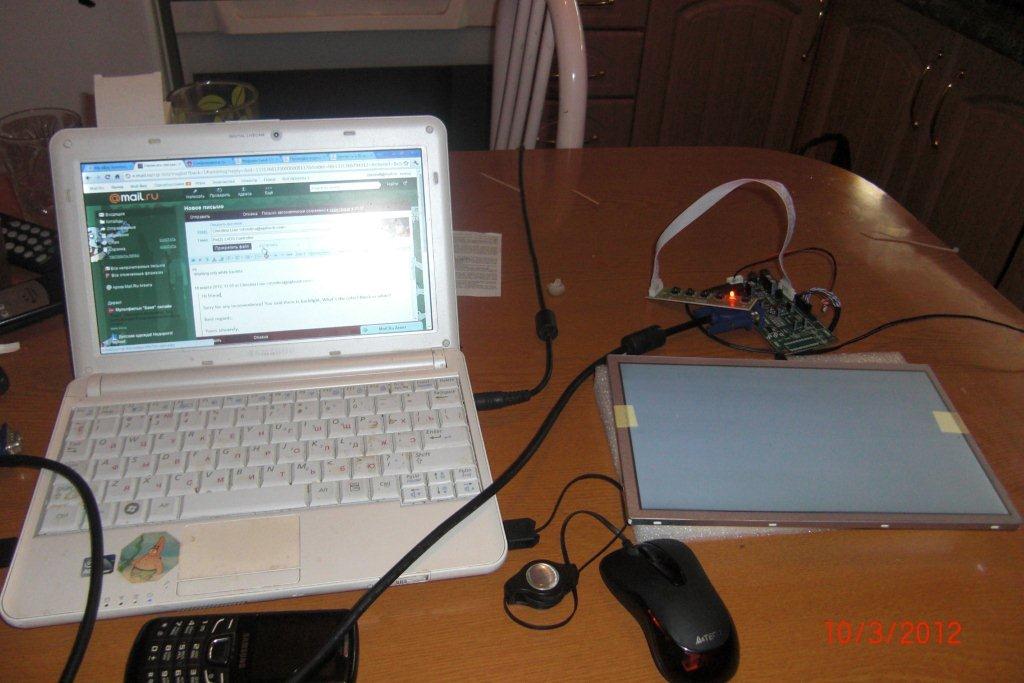 В общем прикупил я себе LVDS VGA controller board 1024×600 LED LCD panel и матрицу HSD100IFW1-A00. Контроллер специально прошит для этой матрицы о чем написано в его описании "Suitable for CLAA102NA0ACW, HSD100IFW1-A00 panel" Контроллер пришел вместе с распаяным кабелем LVDS. Проверил по даташиту, все пины совпадают. Но вот при подключении появилась проблема. Если дать питание на контроллер, но не подключать ВГА кабель, работает белая подсветка. При подключении ВГА, подсветка продолжает работать, но фон монитора черный, сигнал не выводится. Комп определяет матрицу по названию, срабатывает переключение экрана на дублирование. В семерке определился на ура и сразу выбрал правильное разрешение 1024*600. При отключеной матрице на пинах 2 и 10 есть питание 3,32В, пр подключении матрицы питание пропадает. Где копать решение проблемы? Китайцы ответят только в понедельник. |