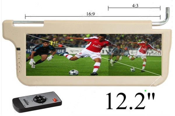 1) 10.2" digital panel Sun-visor TFT minitor 2) 4-way video input, 3 photos at one times 3) anti-glare rear view safety mrrior 4) Touch buttons 5) Resloution: 800*600 pixels 6) Power supply: DC 12V 7) Auto switch to V2 when reversing 8) Spilt 2 images display or 3 images display 9) Last memory funtion 10) Dimension: 273(w)*110(h)*26(d)mm Судя по размерам козырька, размер матрицы такой как надо. Если нужны входы VGA/HDMI и прочие, надо подбирать контроллер отдельно |
