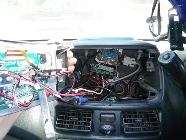 Для этой цели приобрел Тойотку Raum, 2000 года рождения (до этого ездил на Corsa и Sprinter, вообще люблю старых добрых японцев) Описание и фотографии буду добавлять по мере создания. К сожалению сфотографировать вспоминал не все этапы ) Внешний вид: Что вообще планируется: 1) Музыка + видео 2) Навигация, POI 3) Подрулевое управление 4) Радио + TV 5) WiFi синхронизация с домашним PC Так же хочется: Видеорегистрация х4 стороны Управление с брелока сигнашки (запустить/погасить комп, приоткрыть стекла для проветривания, выключить/выключить видеорегистрацию) 03.2012 На момент приобретения авто стояла 2дин магнитола аля "японская балалайка" ![]() Сразу купил самый дешевый mp3 проигрыватель "mp3+радио", чтобы не было совсем скучно от прослушивания местных радиостанций. Так как сам меломан - слушать плохое аудио не могу. (кстати качеством звука на дешевой поделке из м-видео был приятно удивлен, хотя и 4х45w) В общем сразу заказал панель с тачскрином 7`. Кстати поставщиком доволен, привезли быстро и без проблем. (не реклама). Описание и размеры имеются по ссылке. 04.2012 К сожалению процесс сборки и вклейки в штатную рамку не заснял, но в двух словах: Резать и пилить ничего не пришлось. 7' экран как раз входит в штатное отверстие под родную магнитолу. Дополнительно была изготовлена только декоративная рамка вокруг самого экрана, путем вырезания из толстого пластика (пластмассовая папка для бумаг, которая со скоросшивателем). Результат порадовал, в принципе эстетично смотрится. Сзади экран приклеен на эпоксидку. 05.2012 Далее (примерно начало мая) Был разобран и лишен матрицы имеющийся в наличии ноутбук HP dv2000, (на фото с экраном попал в кадр) на него водружен win7 с icarDC и все это подготовлено для проведения полевых испытаний. Так же была куплена внешняя звуковая карта Creative X-Fi в надежде поиметь качественный 5.1 звук. Куплен задешево б/у усилитель Prology Club CA-400. У друга взят "напрокат" саб в корпусе. Проложено нормальное питание для усилителя в багажник. После прокладки проводов под пассажирское сиденье методом "пока пусть тут полежит, а там посмотрим" и подключения адаптера для питания ноутбука через реле (чтобы по сигналу ACC подавалось питание) , в надежде услышать качественный звук был сильно разочарован. Видимо скорости USB2.0 порта на данном устройстве не хватает чтобы "прокачать" звук 5.1 по шине до USB звуковухи в багажнике. Начались 3-4хчасовые эксперементы по устанению данной неприятности, которые так и не увенчались успехом. Пришел к выводу что проблема появляется у многих, и однозначного решения нет. На следующий день решено было поставить на ноут XP, что и было сделано параллельно с рабочим процессом. К вечеру ноут вернулся на свое место под пассажирским сиденьем и порадовал меня неплохим звуком из штатных колонок. + саб. 18.05.2012 Убедился что ноут - решение временное. Заказал на ebay м4-АТХ и контроллер arduino nano. Пока жду буду кататься с ноутом. 01.06.2012 Сделал контроллер питания на основе arduino (самоделка) Функции: