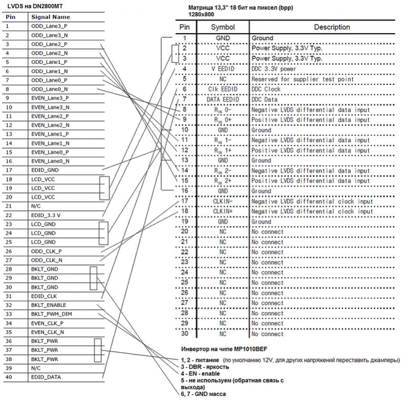 все соединения такие же как и у того монитора что и на моей распиновке, кроме четвертой пары LVDS контакты (17 и 18), их ведь тоже надо подключать я правильно понимаю? просто их нет у вас на изображении.