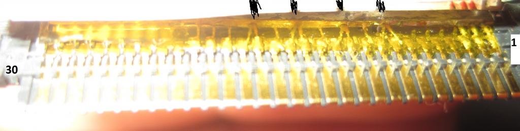 Вопрос №2: Нарисовано 11 соединений, у меня же от матрицы отходит всего 7 проводков, Как подключать?(на рисунке 18 бит а у меня 6, может дело в этом?) или вскрывать разьем и добавлять?