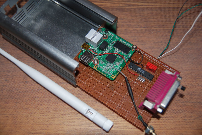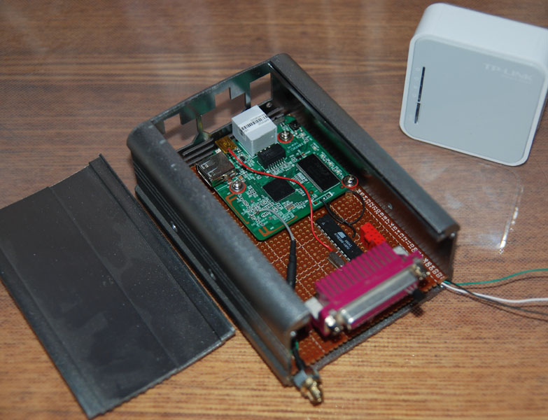 С ребенком собираем карт, сама машина уже почти закончена, скоро поедем Пока с ее сборкой образовался временный застой, в голову пришла идея сделать бортовую электронику. Основные ее задачи такие: 1. Мониторинг телеметрической информации (скорость, обороты и т.п.) и передача ее на удаленное устройство. + возможно на "доску приборов" Интересно посмотреть различные параметры пока ребенок катается, машина строится чисто для обучения, для гонок она не пойдет, поэтому никаких ограничений по весу и прочему у меня нет)) 2. Активная безопасность (отсечка по скорости, возможность остановить карт удаленно) Ребенок маленький, поэтому мне нужна уверенность что он не разгонится и не въедет куда-нибудь. Перебрав кучу решений по мониторингу, пришел к роутерам Мелкий и мощный аппарат с практически всем что нужно на борту.Система построена на базе роутера TP-link MR-3020 в его задачи входит обработка собранной информации, генерация динамических web страниц и передача этого всего по wi-fi на мой телефон))) Роутер работает в паре с Atmega8 которая занимается собственно сбором информации с датчиков и управлением различными выходами. Корпус от старого китайского инвертера, хоть на чтото он сгодился)) Антенну пришлось вынести из металического корпуса Пока Atmega считывает только данные с термодатчика (воткнут в порт) в ближайшее время научу ее определять скорость и обороты двигателя Роутер работает на прошивке OpenWrt и с Atmega связан через встроенный ком порт. С Web интерфейсом уже более менее разобрался, т.е. связка (датчик - Atmega - Роутер - Телефон) уже работает. |