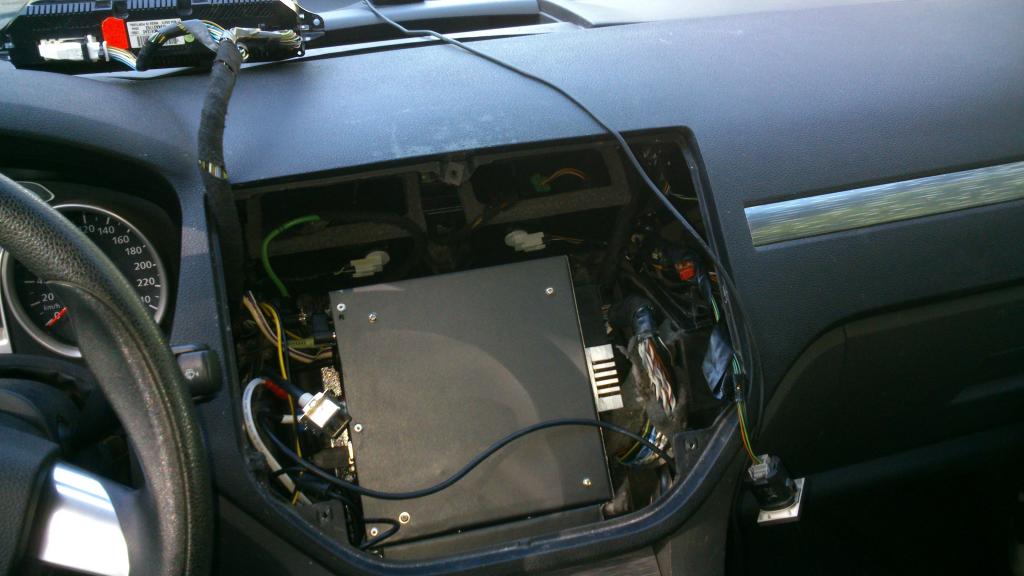 левый дефлектор пока демонтирован - через его отверстие очень удобно тягать всякие провода, которые пока не заведены в ардуино - то есть клава-мышка, веб-камера, аварийка, грелка стекол... когда будет доведен до ума контроллер энкодеров и кнопок, дефлектор встанет на свое место, а под кнопки будет пропилено красивое дырко, где каждое кнопко огребет все, что ей положено в жызнЕ...