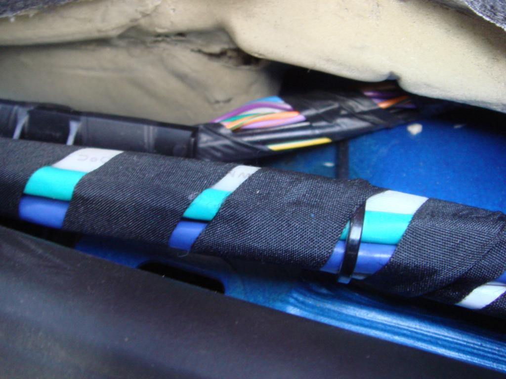Все провода протянули, получился довольно внушительный объем доп кабелей , теперь выравниваем их всех по длине, собираем в жгут стяжками (специальной автоизоленты на тот момент у меня не было под рукой)