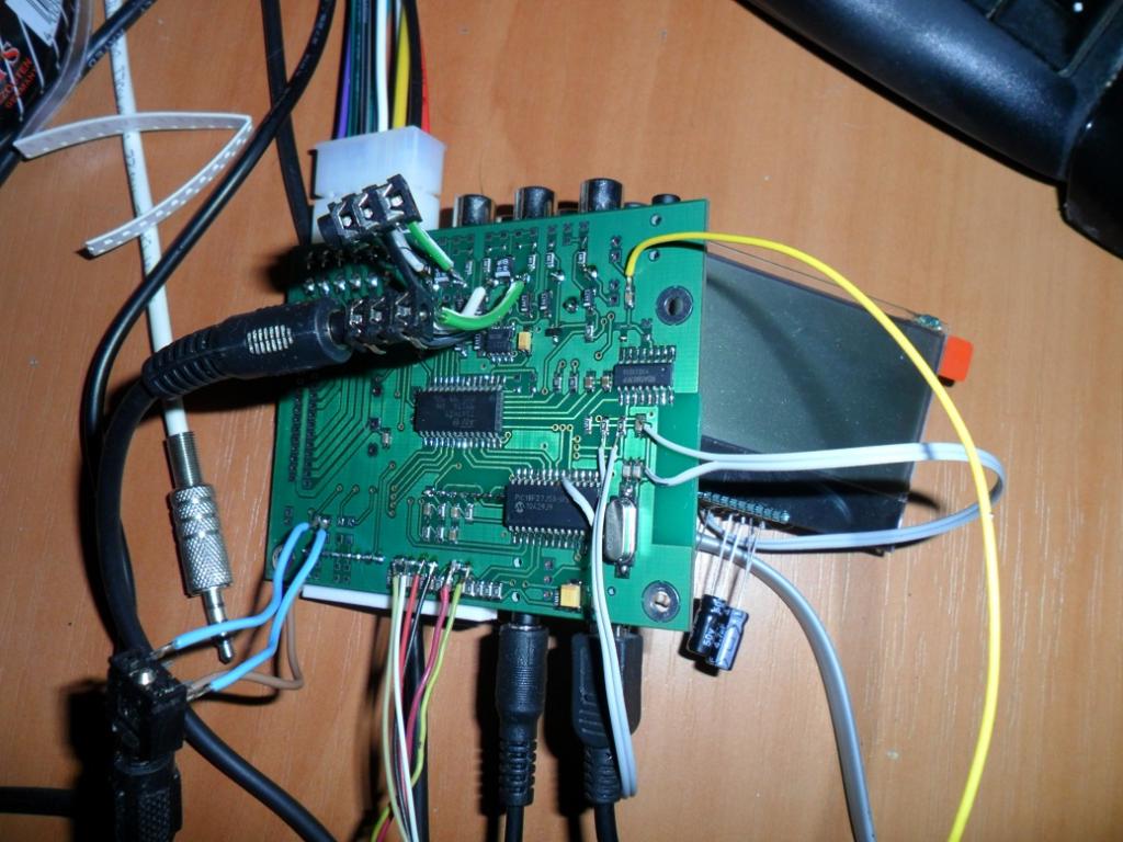 Устройство из себя представляет: 1. ФМ радио с возможностью приема RDS. 2. Аудиопроцессор с выходом по системе 4.1 - Имеет 4 стерео входа (ФМ, Bluetooth и AUX1, AUX2 которые выведены на разъем RCA) - Имеет 5 моно выходов (два передних, два задних и саб. Выход саба выведен на разъем RCA) - Вход моно 'Mix' для подмешивания аудиосигнала навигации или парктроника, причем вывод звука настраивается на какие передние динамики выводить (только левый, только правый или в оба). Также есть возможность приглушать основную громкость при появлении аудиосигнала на этом входе и после пропадания аудиосигнала, восстанавливать прежнюю основную громкость через определенный интервал времени (настраивается). 3. Bluetooth для организации громкоговорящей связи. Для передачи данных не предназначен! 4. Усилитель мощности 4х50Вт 5. Два канала резистивных кнопок с фиксацией 4х состояний (одиночное нажатие, двойное, длинное и повторение при удерживание далее кнопки). 6. Поддержка энкодера. 7. Поддержка дистанционного управления. (Пока только системы NEC) Некоторые особенности устройства: 1. Работа аудиовходов в 3х режимах, а именно: - "Стандартный". Звук от любого стерео источника раскладывается на 5 моно, с возможностью настройки баланса между левыми и правыми динамиками, баланса между передними и задними динамиками. - "Вторая зона". В этом режиме можно задать какой источник из 4х будет играть на передние динамики, а какой на задние. (Полезная фичя, если есть в авто потолочный DVD или DVD (планшет) встроенный в подголовник. Это позволяет задним пассажирам слушать свой контент. - "Вход 4.0". Вариация между двумя первыми режимами. Если в качестве источника сигнала выбирается радио или блютуз, то активируется первый режим, если выбирается AUX1 или AUX2, то активируется второй режим, с одним отличием что громкость задних динамиков не регулируется отдельно. Этот режим полезен для просмотра многоканальных фильмов или прослушивания многоканальной музыки. Его есть смысл выбирать, если головное устройство (ПК или планшет) имеет многоканальный вывод звука. Если нужен будет режим 4.1 (с сабом), то нужно в медиапроигрывателе выставить режим подмешивания сабового канала во фронтальные. А что-бы фронтальные каналы не перегружались низкочастотным сигналам в аудипроцессор добавлен пассивный ФВЧ первого порядка с частотой среза около 80 Гц, 6 дБ на октаву, который можно включать/выключать. 2. Передача всех событий от кнопок, енкодера, ДУ в головное устройство. 3. Устройство в системе видеться как HID. Помимо передачи данных также эмулируется стандартная клавиатура компьютера. На различные действия устройство можно назначить эмуляцию нажатия комбинации клавиш на клавиатуре, при этом все настройки сохраняется в памяти устройства. 4. Возможность обновление ПО через USB. 5. Размеры платы 92х70 мм. Возможен монтаж как в корпус 2DIN так и в отдельный корпус. И в заключении парочка фоток что должно получиться в конечном счете. НА СЕГОДНЯШНИЙ ДЕНЬ УСТРОЙСТВО ЕЩЕ НЕ ГОТОВО! |