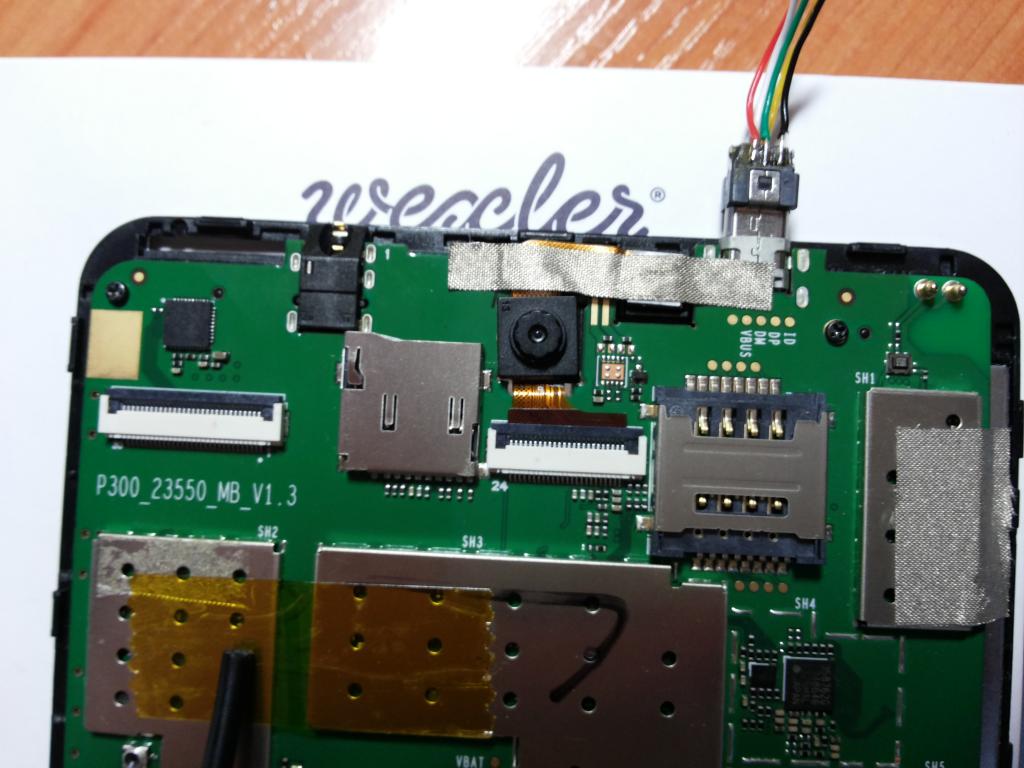 На плате обнаружились пятаки, которые дублируют контакты usb , под паял к ним и вывел гнездо micro usb которое отрезал от Y - коннектора. |